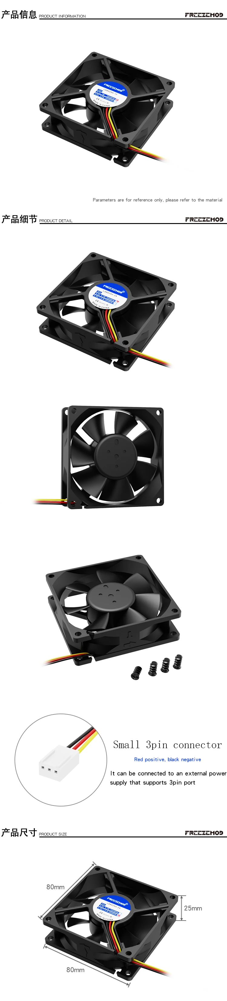 FREEZEMOD Industrial water cooling fan 8cm double ball 12-24V voltage speed 4000 RPM. LS8025H