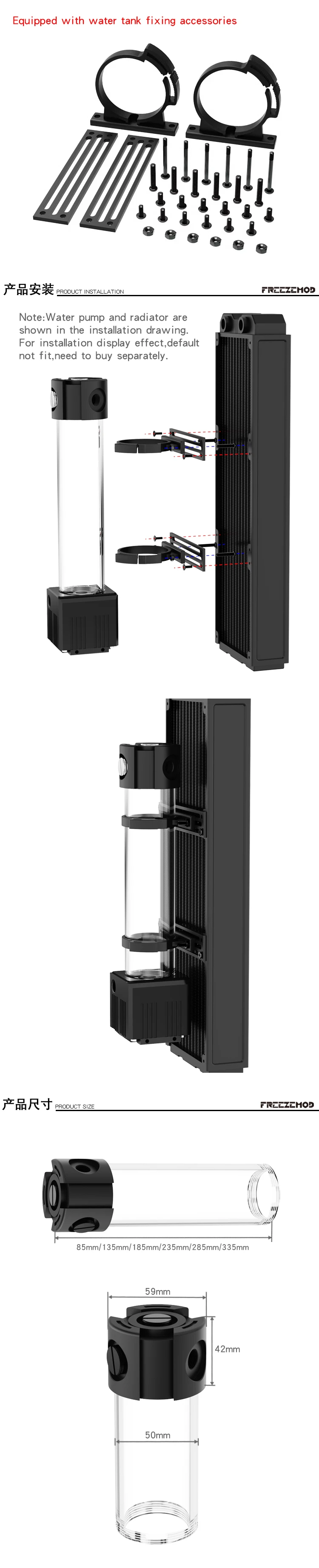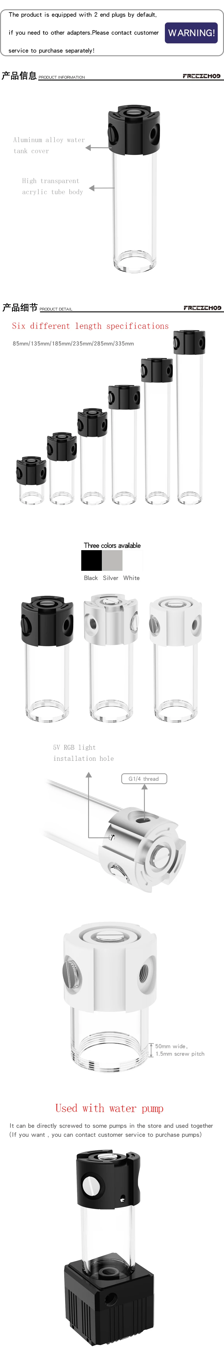 FREEZEMOD water pump integrated expansion tank colorful metal cover 50MM outer diameter external defoamer.PJ-PM6SX