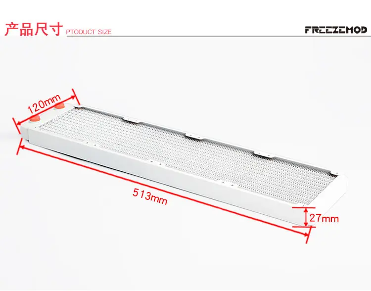 Specifications: about 513mm * width 120mm * thickness 27mm (excluding inlet and outlet thread height)