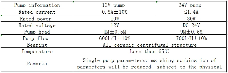Note: single pump parameters, matching combination is the parameters will be reduced, subject to the physical object
