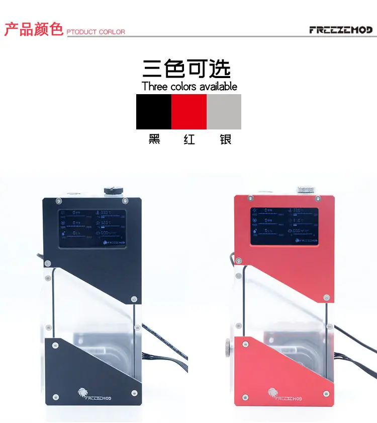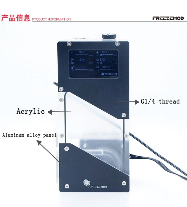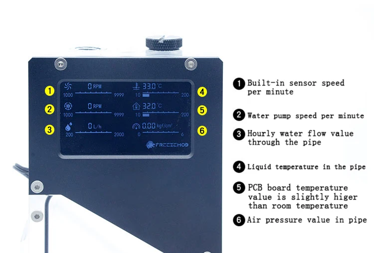 FREEZEMOD water cooler tank pump integrated air pressure speed flow rate and temperature display. PUB-FXDDC